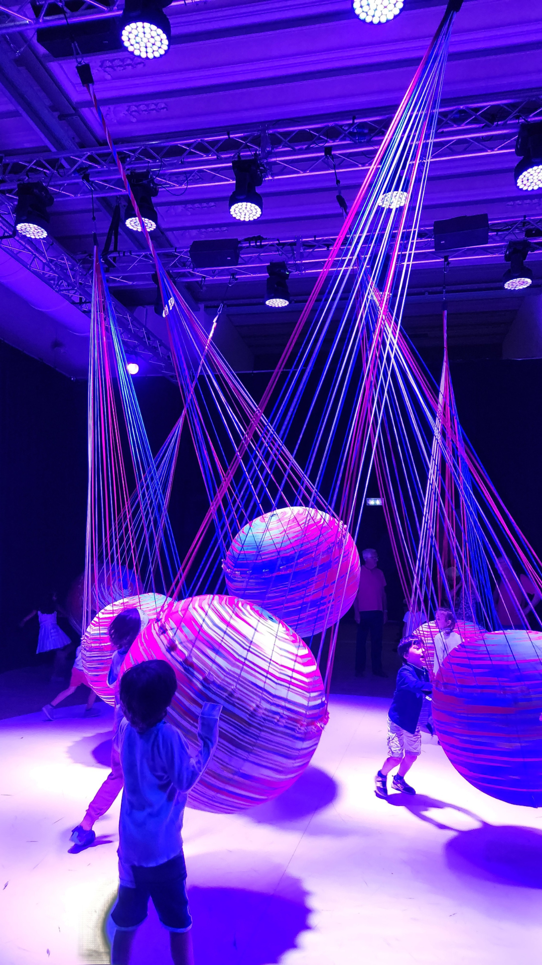 Grâce à Euphoria, tu es plongé.e dans une scénographie immersive et ludique. Tu peux en effet te balader à travers des labyrinthes géométriques, des piscines à balles, des structures gonflables colorées… l’art devient ainsi un terrain de jeu où petits et grands deviennent acteurs !